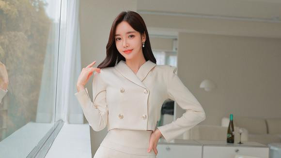 - 孙允珠: 米色西装裙, 剪裁合体的设计完美展现她的曼妙身姿